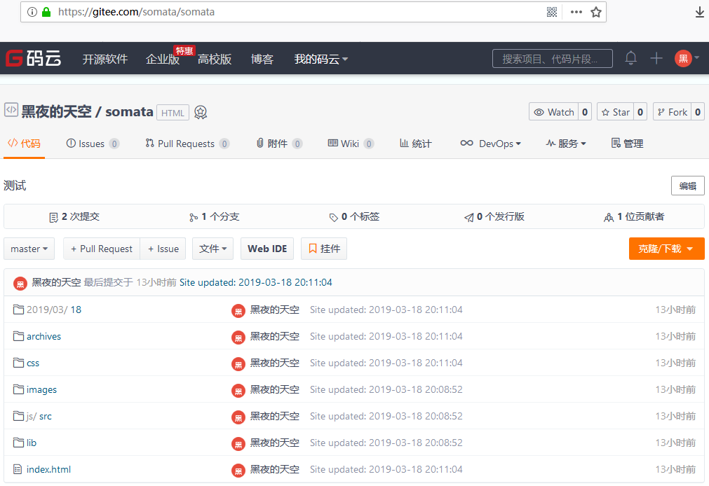…… deploy: type: git # type为git repo: https://gitee.com/somata/somata # 仓库的URL ……