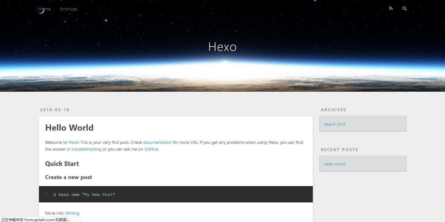 npm install -g hexo # 通过npm安装hexo # -g 指定全局安装,可以使用hexo命令
