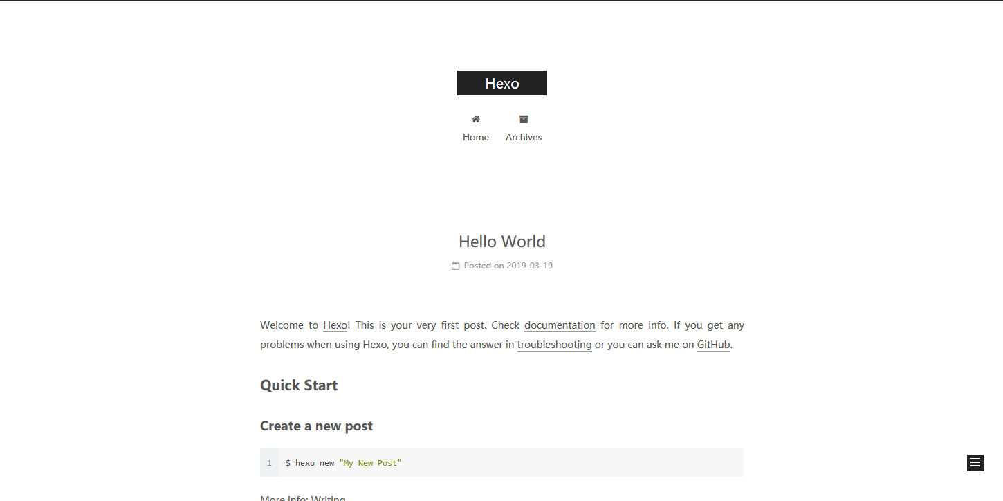 hexo clean # 清除所有记录 hexo generate # 生成静态网页 hexo server -p 80 # 启动服务