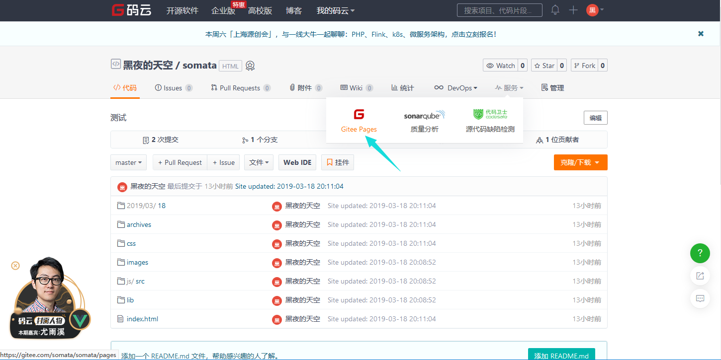然后选择开启 或 更新即可。注意需要绑定手机号,否则不允许使用pages服务。然后访问网址