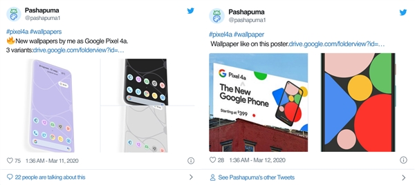 Pashapuma根据初期曝光的谍照与泄露的Pixel 4a宣传广告画面,自制了一批接近官方的单色和彩色的Pixel 4a壁纸。