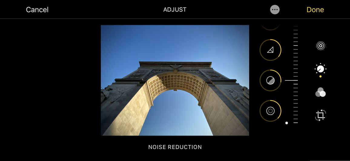 如果您使用的是旧版iPhone,没法获得上面酷炫的新相机功能,不过更新到 iOS 13,还是能够体验重新设计的照片应用中的强大编辑功能。比如支持照片的清晰度,清晰度,降噪和晕影的新调整设置。