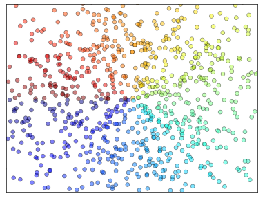 from pylab import *def f(x,y): return (1-x/2+x**5+y**3)*np.exp(-x**2-y**2)n = 256x = np.linspace(-3,3,n)y = np.linspace(-3,3,n)X,Y = np.meshgrid(x,y)contourf(X, Y, f(X,Y), 8, alpha=.75, cmap='jet')C = contour(X, Y, f(X,Y), 8, colors='black', linewidth=.5)show()