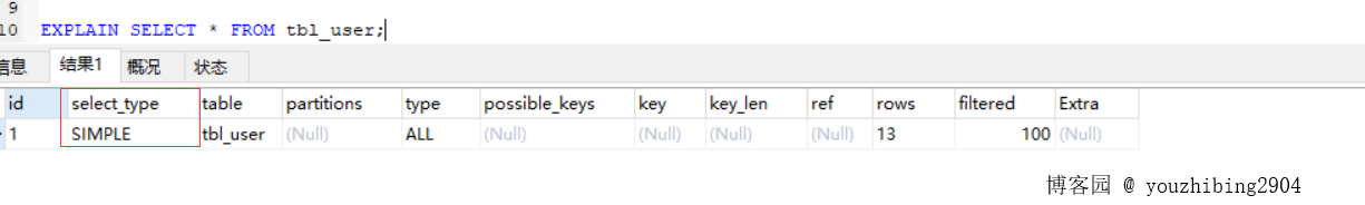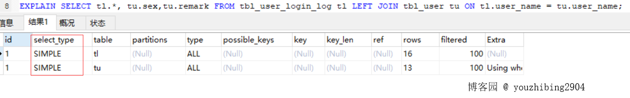 SIMPLE:简单的 SELECT 查询,没有 UNION 或者子查询,包括单表查询或者多表 JOIN 查询