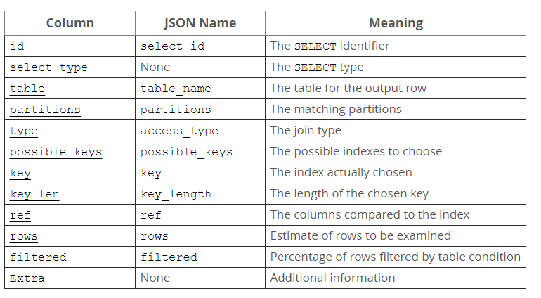 这么滴,我们先来看看 EXPLAIN 输出结果的大概,是不是长得满脸麻子,让我们望而生畏 ?