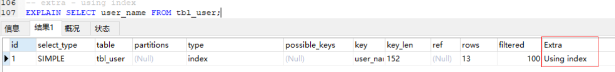 表示 SQL 使用了使用覆盖索引,而不用回表去查询数据,性能非常不错