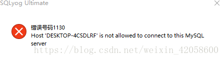 远程的Host不允许连接,这个时候需要开启所有人都可以访问权限,即host ="%" :