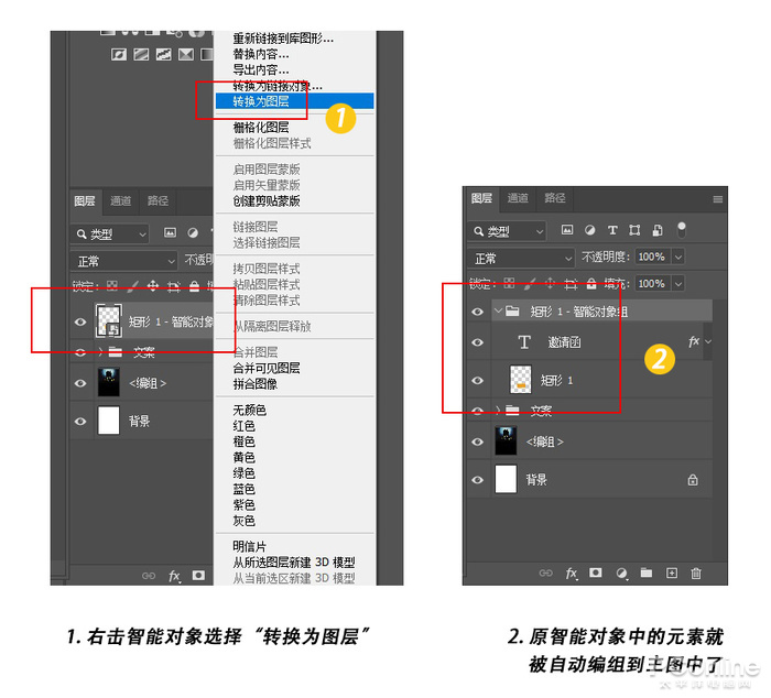 注:转换为图层的智能对象,也可以再次右击换回智能对象,两者完全可以互逆。