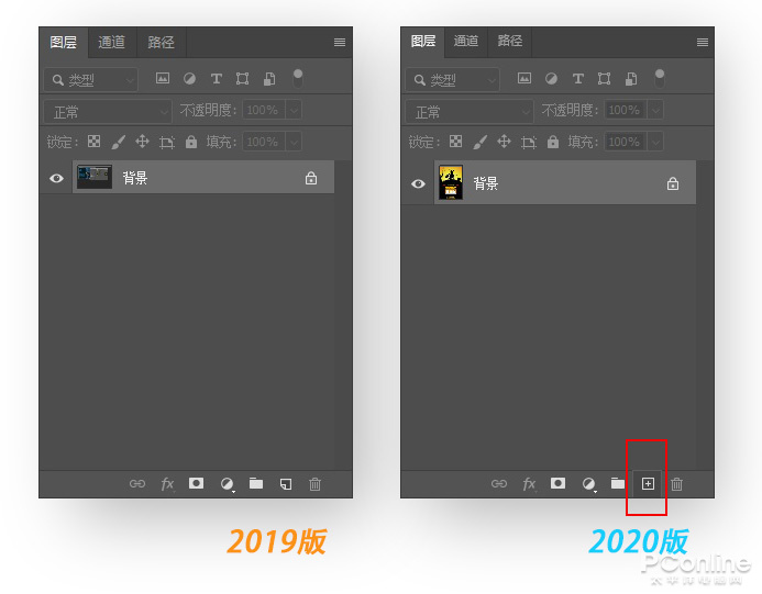 以上就是Photoshop 2020的主要更新内容了,当然除此之外,新版在一些细节方面也有变化,比如说新建图层按钮就由之前的文件图标改成了“+”,但实际功能并没有变化,估计是为了和旁边的新建文件夹按钮加以区分吧!