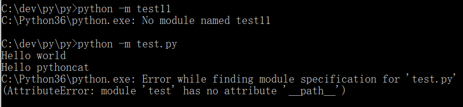 但它的前提是:在执行目录中存在着“test.py”,且只有唯一的“test”模块。对于本例,如果换一个目录执行的话,“python test.py”当然会报找不到文件的错误,然而,“python -m test”却不会报错,因为解释器在遍历sys.path