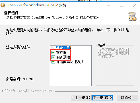 ps:其实正在发现问题所在是我在用exe版安装openssh的时候发现了下面的选项,exe版安装是默认按照客户端和服务器端的,而我们源码安装应该只有客户端。