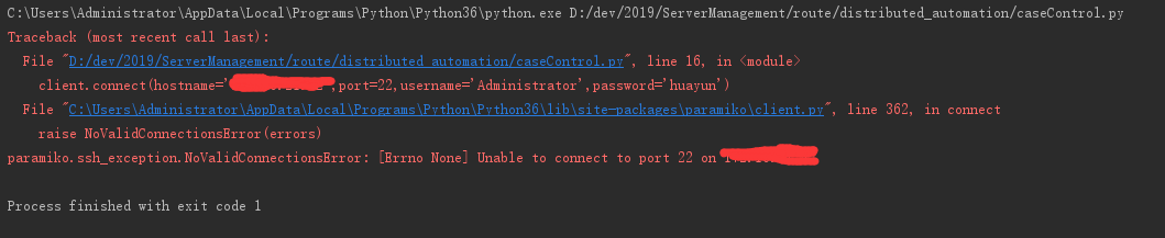 import paramiko client=paramiko.SSHClient() client.set_missing_host_key_policy(paramiko.AutoAddPolicy()) client.connect(hostname='***',port=22,username='Administrator',password='***') client.close()