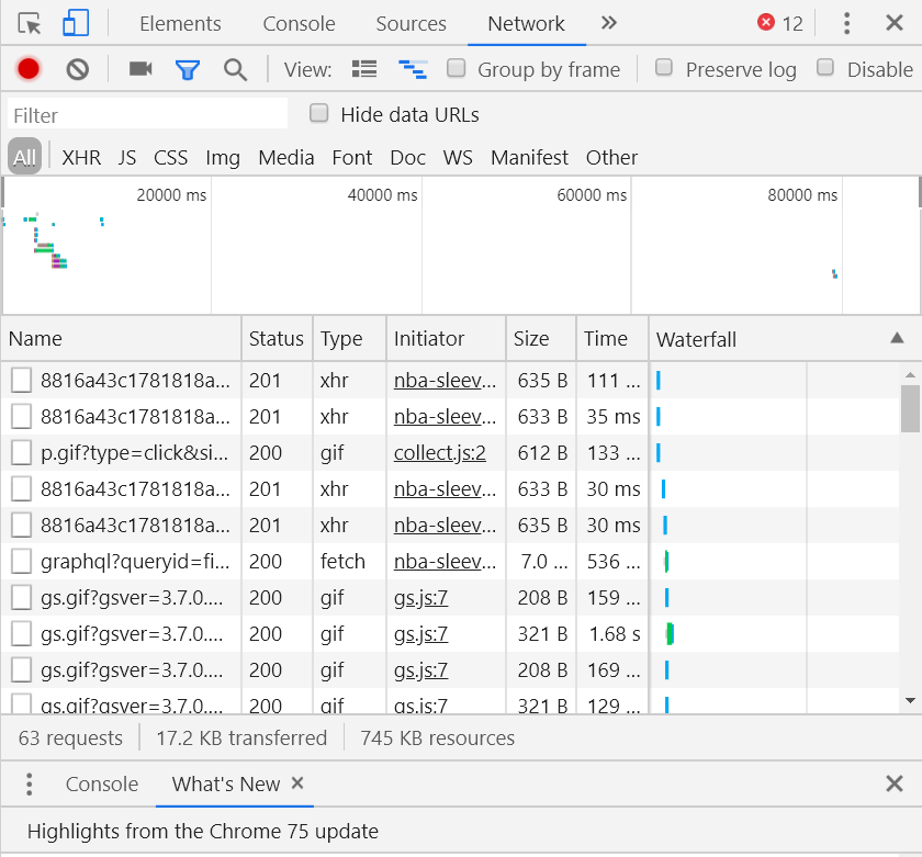 由于我们是先打开网页再打开调试窗口,所以目前我们看不到数据,别急,我们刷新一下再看