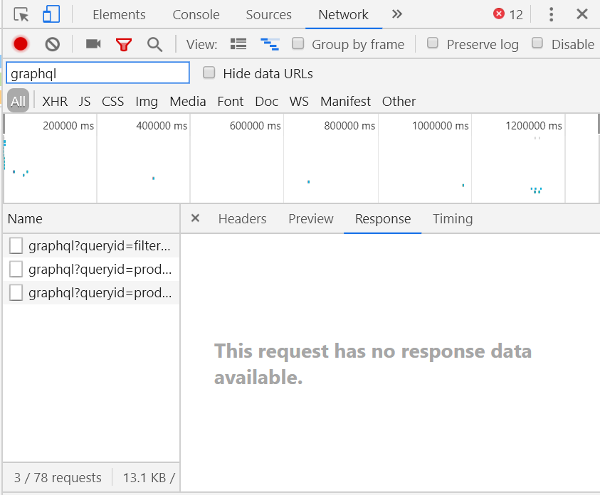 来了来了,它真的出现了,现在出现了3个文件都是graphql名字开头,毫无疑问第一个文件是我们上面找到的,那么第二个第三个呢? 我们点开看看,会发现对应的商品名称之类的真的是瀑布流下端的数据。