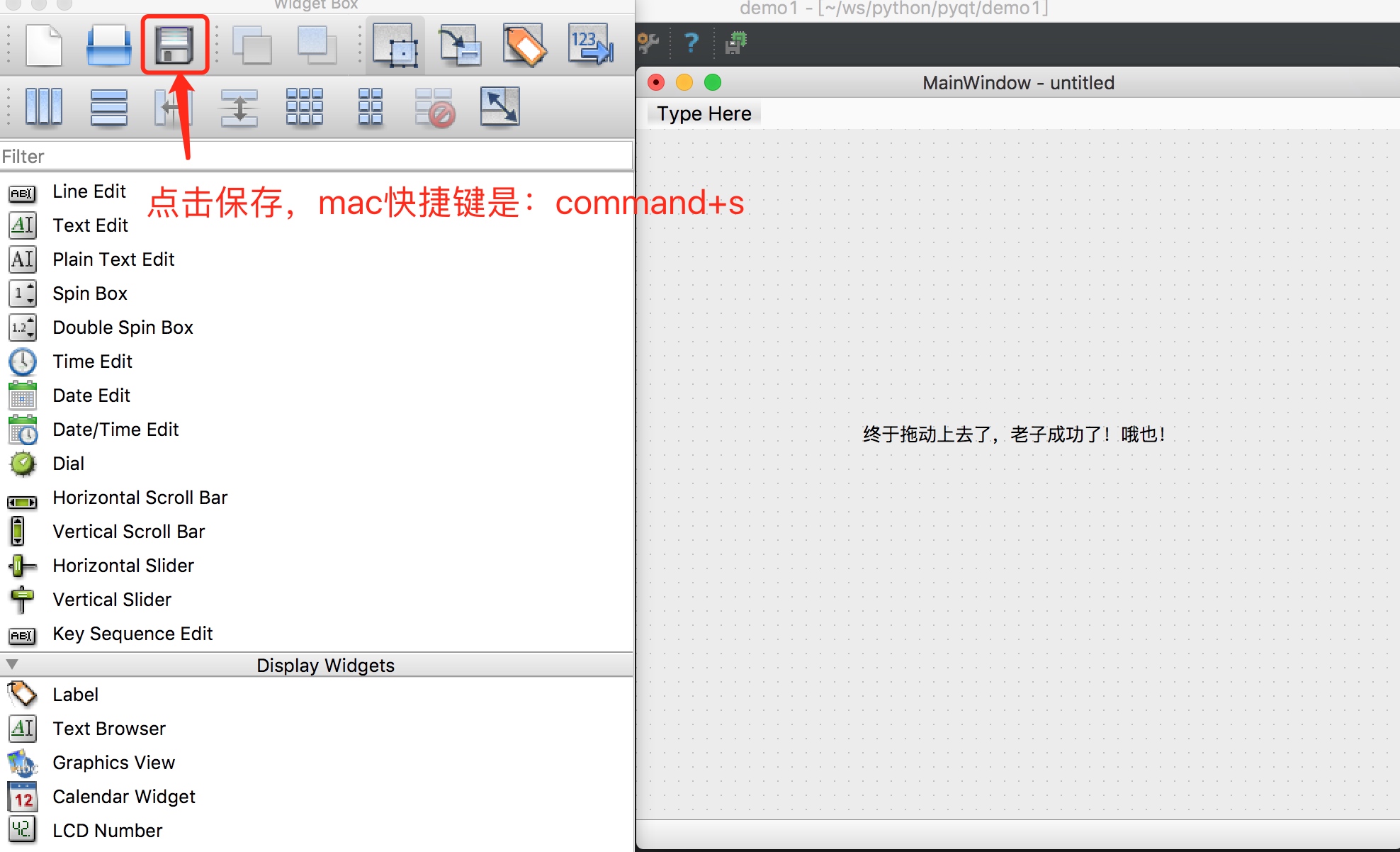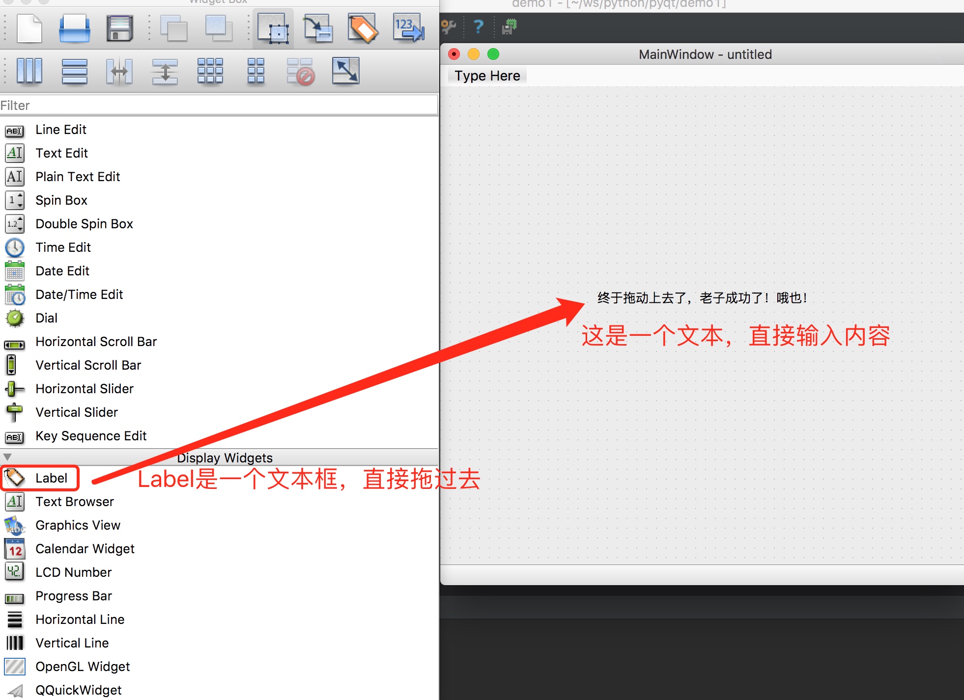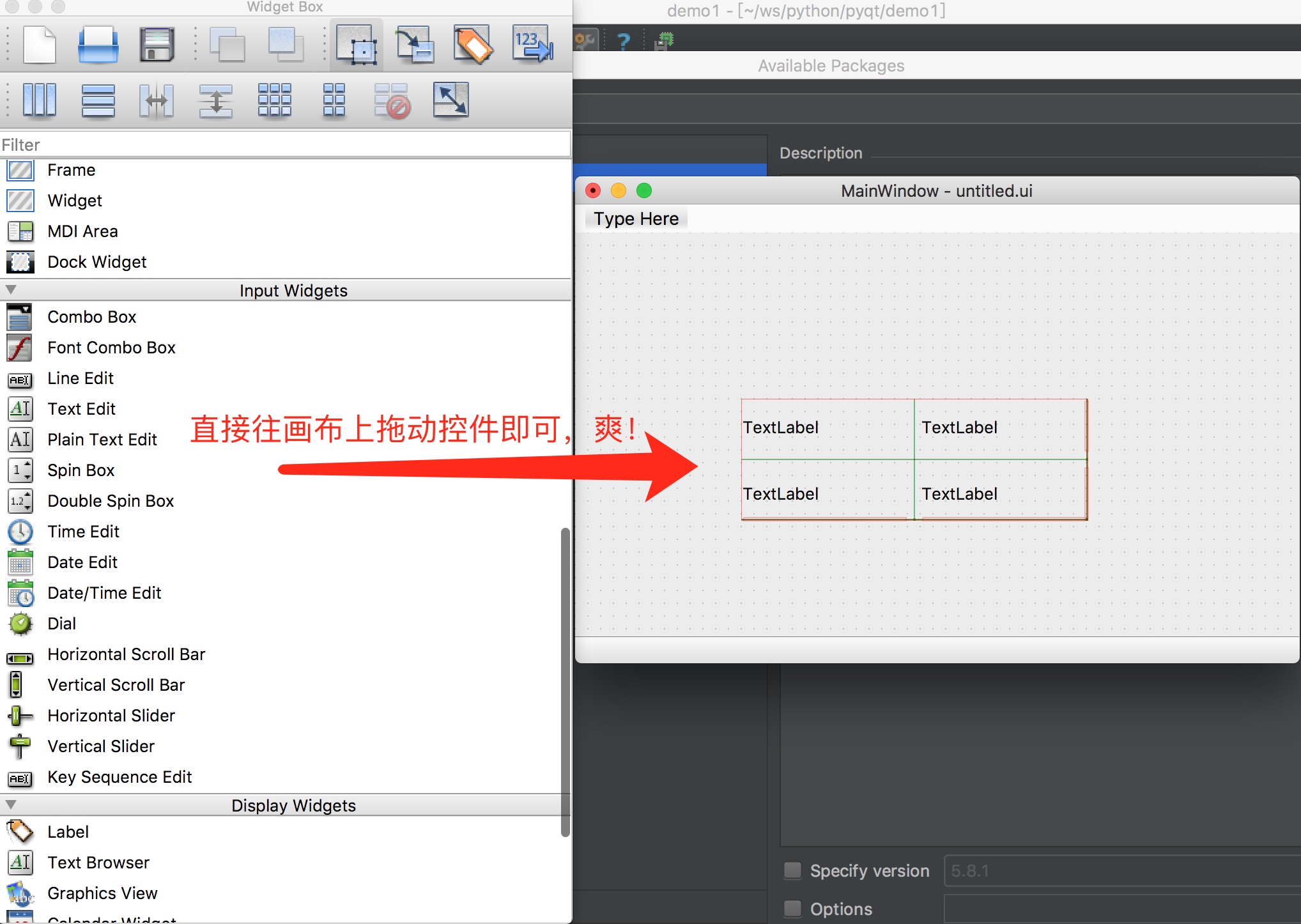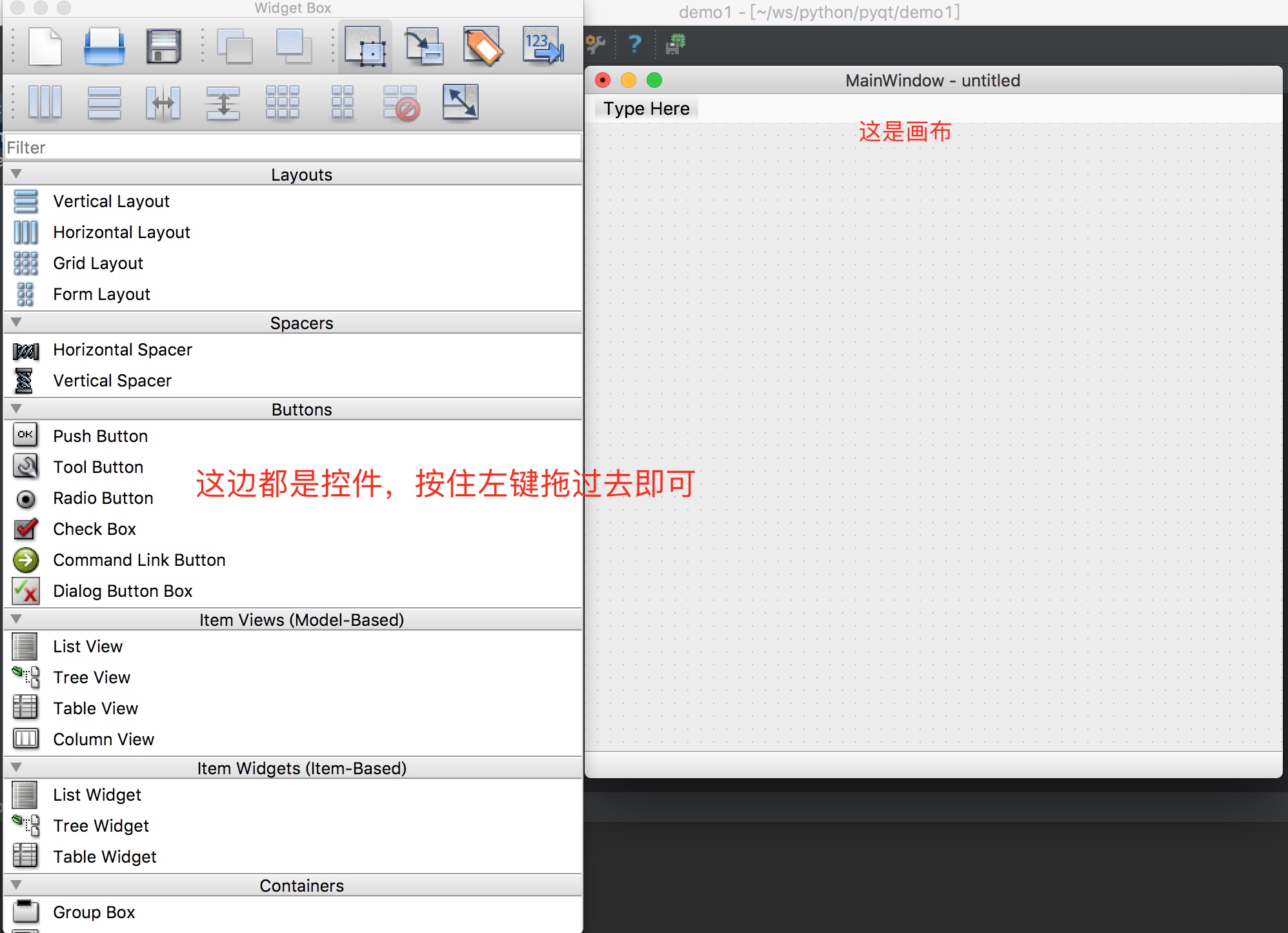 启动了Designer程序,我们就可以拖控件了。