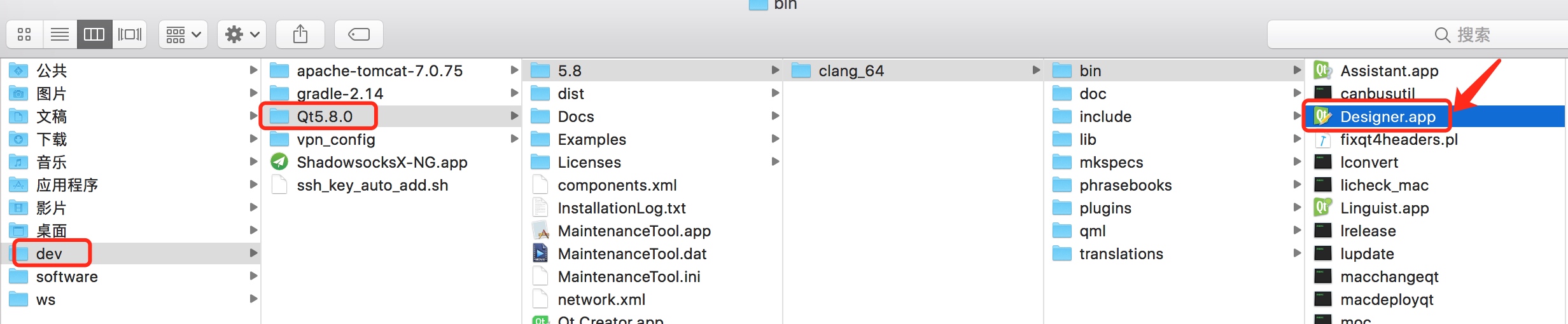 这是我安装后的路径,其实最后就是要QtDesigner
