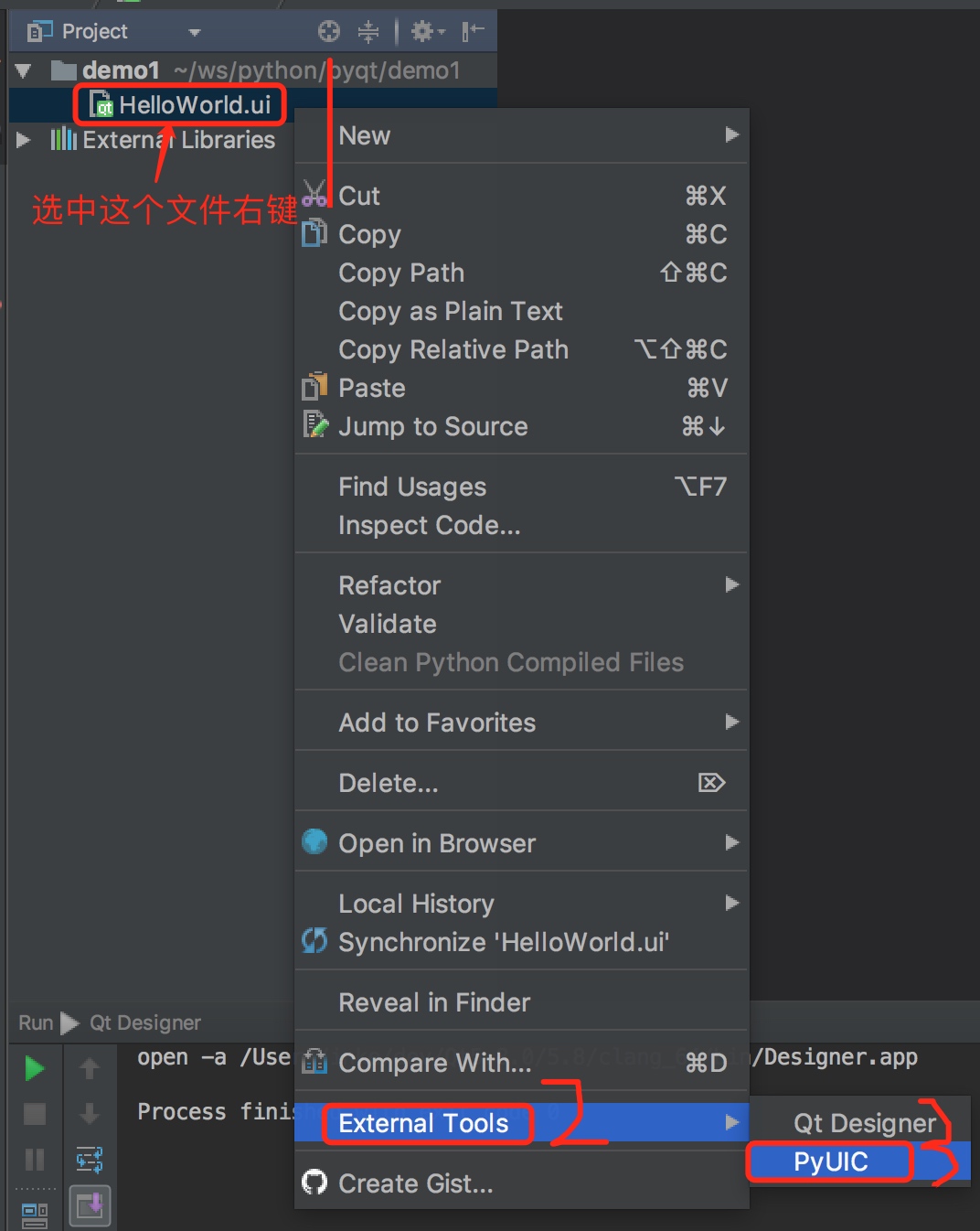 选中文件右键,选择我们之前配置的PyUIC