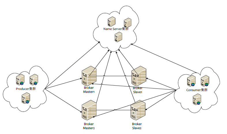 下面是一张RocketMQ多master多slave模式部署的架构图。