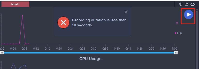需要注意的是:记录时间不能少于10S。少于10S,则会提示如下信息: