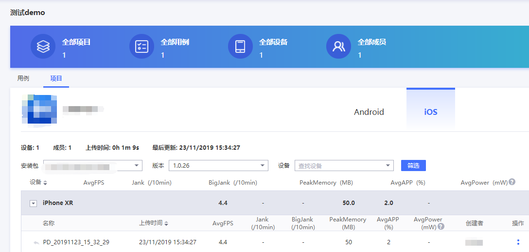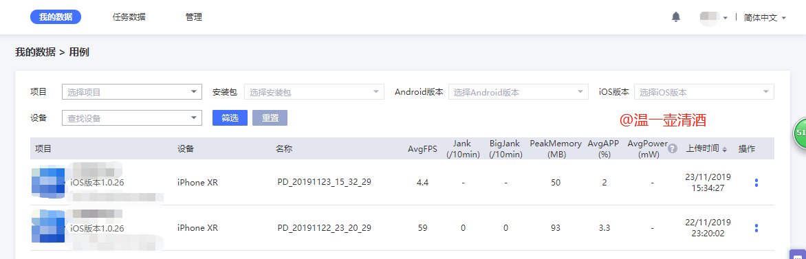 可以修改名称,点击confirm,数据会上传到perfdog的后台,如下: