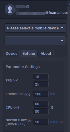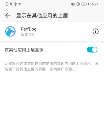 注意点:Android平台,安装模式下,手机屏幕左上角有实时性能数据显示(Android手机请打开PerfDog悬浮窗管理权限,否则手机上不会显示性能参数)。