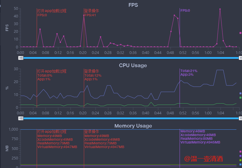 Xcode Memory (XCode Debug Gauges统计方式即XCode Memory)。受iOS平台限制,暂时无法获取ios10及以下系统的Xcode Memory。后续版本增加。如做性能测试,建议升级iOS系统版本