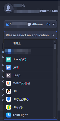 选择模式后,则可以选择要测试的应用了(当前手机中的所有app都可以被选择),如下页面: