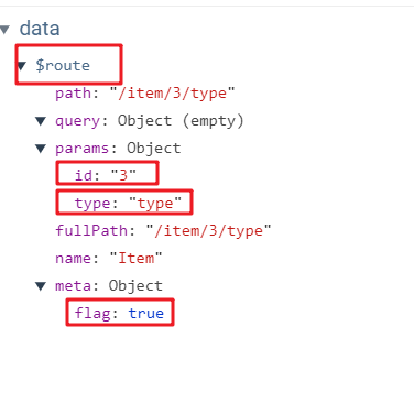 export default new VueRouter({ // 添加路由 routes:[ { path:'/home/:id/:type', // 如果想在路径上传递值进来,就使用:占位 component:Home, meta:{ // 添加自定义的字段,可以当成flag,也可以文本 flag:true } },