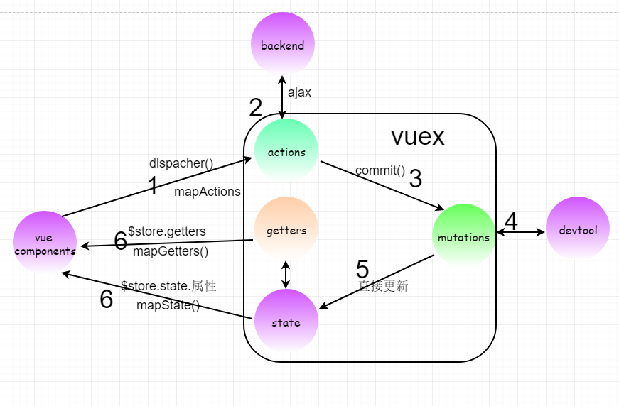 // 从vuex中引入映射 import {mapState,mapGetters,mapActions} from 'vuex' export default { computed:{ ...mapState(['state中的属性值']) ...mapGetters(['getters.js中的方法名']) }, methods:{ ...mapActions(['actions.js中的方法名']) } }