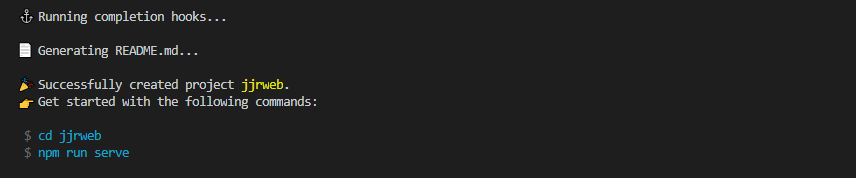 vue create jjrweb //后面为文件名 不支持驼峰(含大写字母)