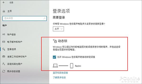 不知是否是名字的原因,但总感觉这项功能很多人并不了解。其实你完全可以把它理解成一项电脑锁定功能,只不过不是通过Win+L,而是与电脑连接的蓝牙设备(比如你的手机)不在连接范围后自动锁定。