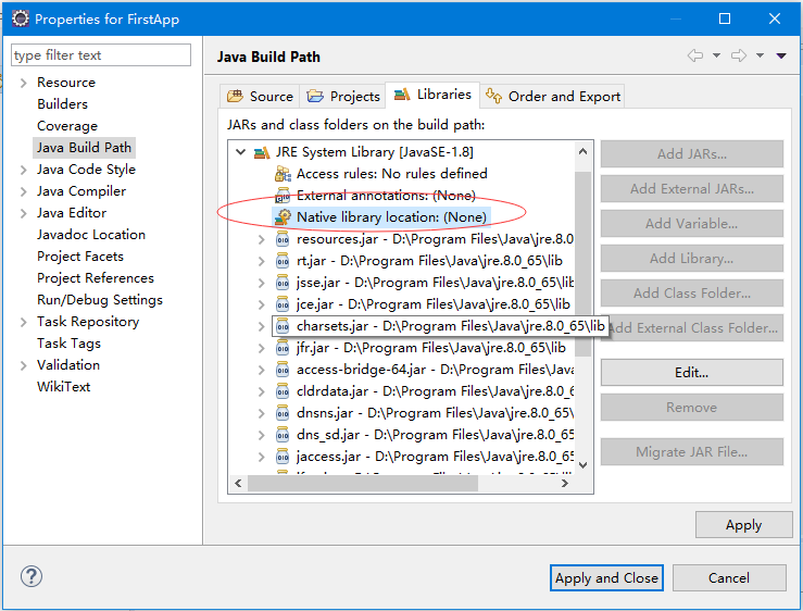 第2步 - 扩展它,会看到系统库和本机库的位置(Native library location),如下面的截图所突出显示。