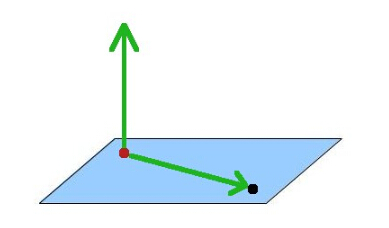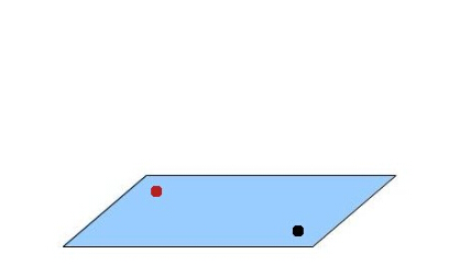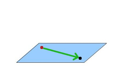 我们来看一下如何使 billboard 一直朝向相机。在下面的这张图片中,黑点代表相机,红点代表 billboard 的位置。每一个点都在世界坐标系下,虽然看起来就好像它们像是位于平行于 XZ 平面的一个平面上(当然也没必要如此),实际上任意两个点都行。