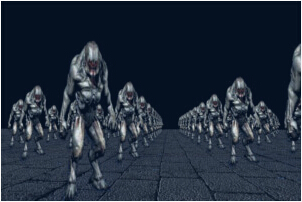FS 中的处理非常简单的——它的大部分工作是借助于 GS 中的纹理坐标进行纹理取样。这这里我们使用了 OpenGL 中一个新的功能——内置关键字 “discard” ,在某些情况下,我们可以希望将某个片元完全丢弃,我们就可以使用这个关键字。这一课中使用的纹理图像是一个黑色背景下的怪物,理想情况下我们不希望我们渲染出来的 billboard 出现黑色的背景,所以我们对片元的颜色进行判断——如果 billboard 的颜色是黑色,我们就丢弃这个像素。这样最终渲染出来的就只剩下怪物的图像了,试着将 “discard” 注释掉,看看有什么不同。