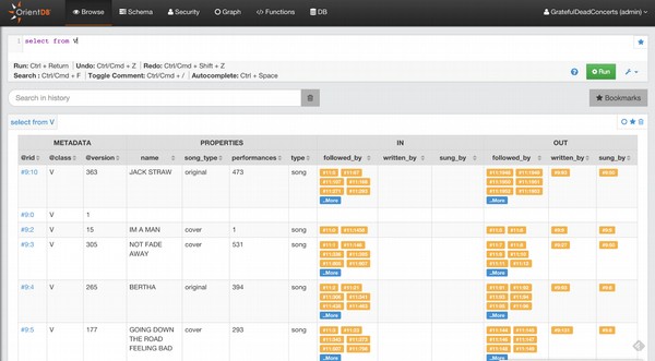 值,如果记录是文档,则将进入文档编辑模式,否则您将进入顶点编辑。