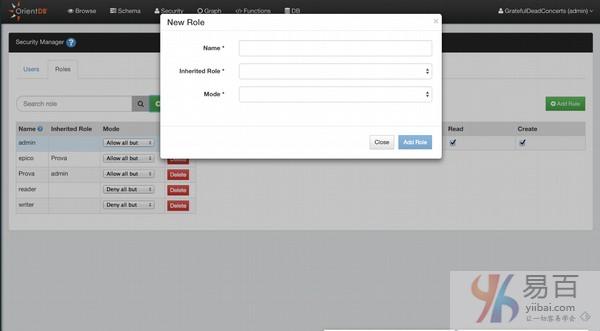 要添加新用户,请单击添加角色按钮,完成新角色(名称,父角色,模式)的信息,然后保存以将新角色添加到数据库。