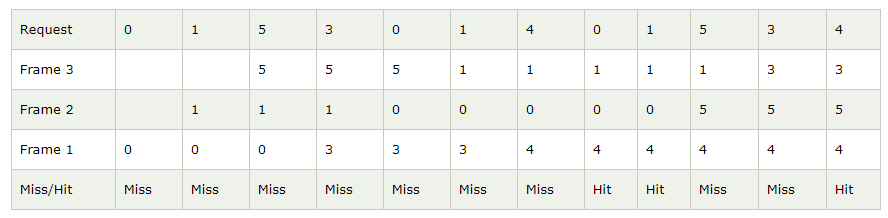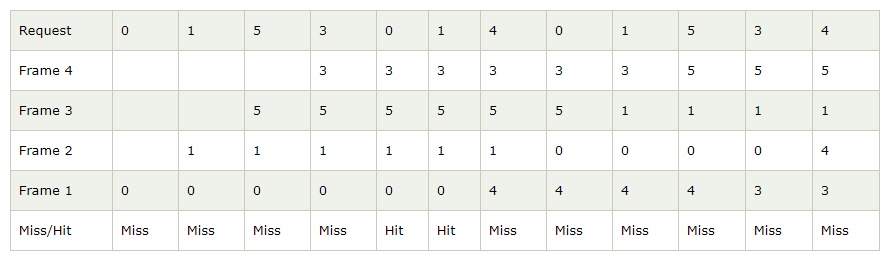 因此,在这个例子中,页面错误的数量正在增加,因为这增加了帧的数量,所以这受到了Belady异常现象的影响。