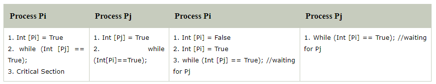 它还检查其他流程是否也有兴趣。 我们应该注意到Pi被抢占了,但其感兴趣的变量是真实的,这意味着它需要在临界区进一步执行。 因此Pj不会有机会陷入while循环。