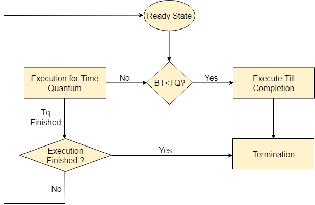 轮循调度算法是最流行的调度算法之一,它可以在大多数操作系统中实际实现。 这是先到先得的排程先发制人的版本。 该算法着重于时间共享。 在这个算法中,每个进程都以循环方式执行。 在称为时间量的系统中定义了一定的时间片。 就绪队列中的每个进程都分配给该时间段的CPU,如果在该时间内进程的执行完成,那么进程将终止,否则进程将返回就绪队列并等待下一轮完成 执行。