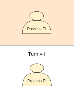 这种方法只能用于两个进程。 一般来说,让两个进程是:Pi和Pj。 它们共享一个称为转变量的变量。 程序的伪代码可以给出如下。
