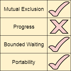 这一机制无法保证进展。 如果Pi不想进入临界区,那么Pj被无限期阻挡。 Pj必须等待很长时间,因为转向变量将保持为0,直到Pi将其分配给j。