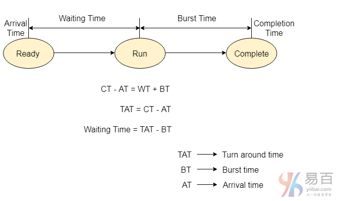 该过程从抵达到完成所花费的时间总量称为周转时间。