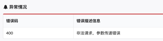 注释,可以有多组,格式为:@exception 错误码 错误描述信息