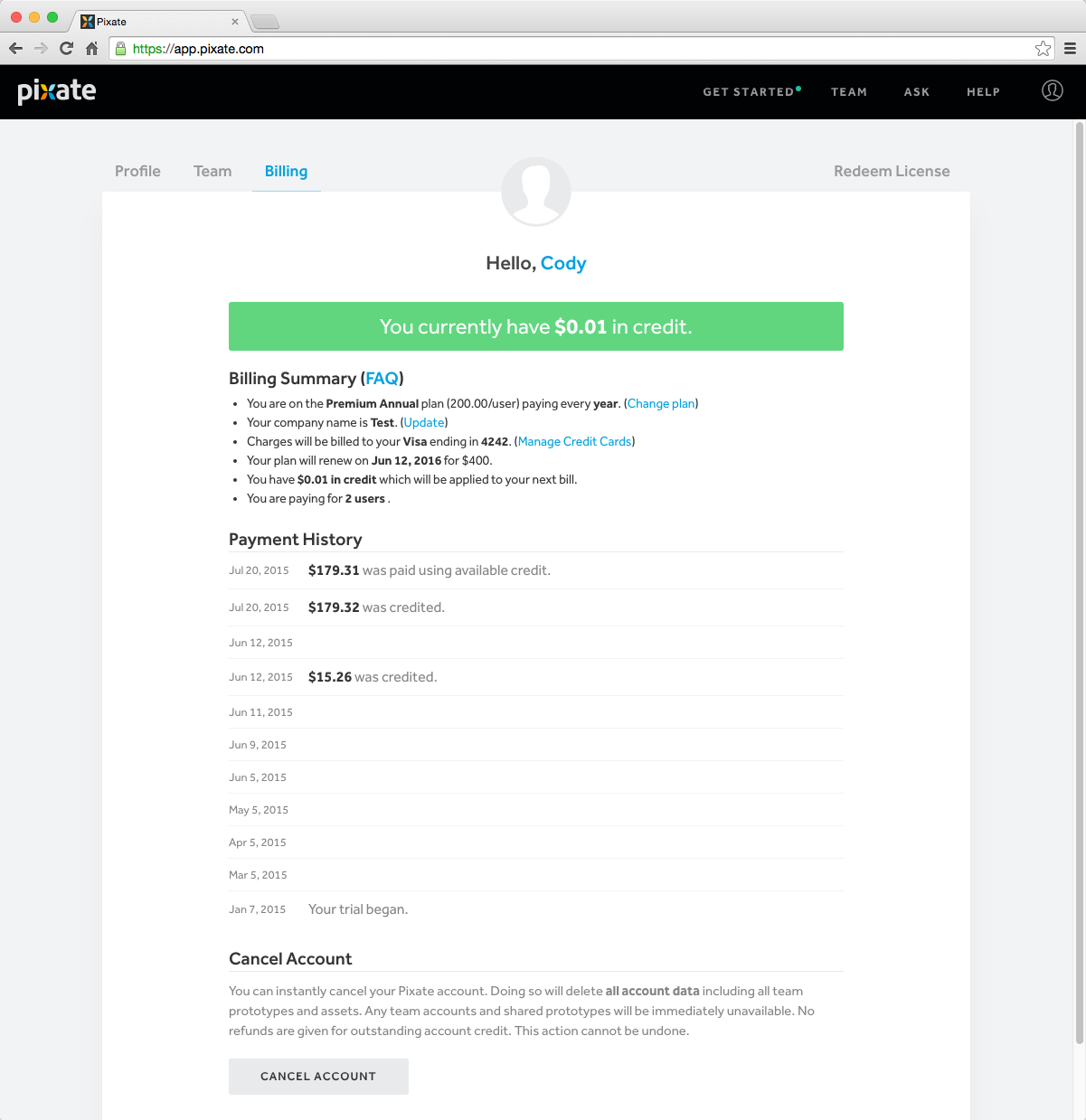 关于费用计算的具体问题,请使用您已注册的 Pixate 邮箱发送邮件至 billing@pixate.com。