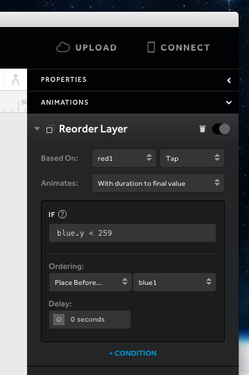 这些用来设置特定动画和交互,将其应用到图层。动画的范围和交互与动画的关系用来作为判断条件。