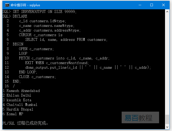 dbms_output.put_line(c_id || ' ' || c_name || ' ' || c_addr);