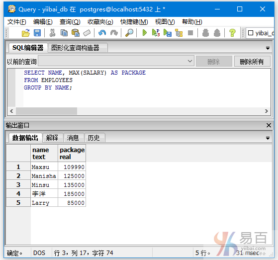 SELECT NAME, MAX(SALARY) AS PACKAGE