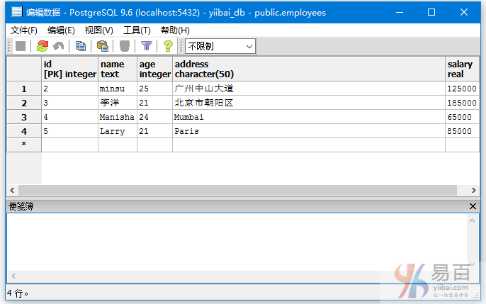 的数据记录,可以看到ID为1的记录已经被删除了 -