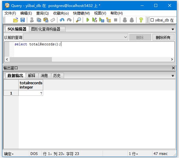 PostgreSQL函数也称为PostgreSQL存储过程。 PostgreSQL函数或存储过程是存储在数据库服务器上并可以使用SQL界面调用的一组SQL和过程语句(声明,分配,循环,控制流程等)。 它有助于您执行通常在数据库中的单个函数中进行多次查询和往返操作的操作。