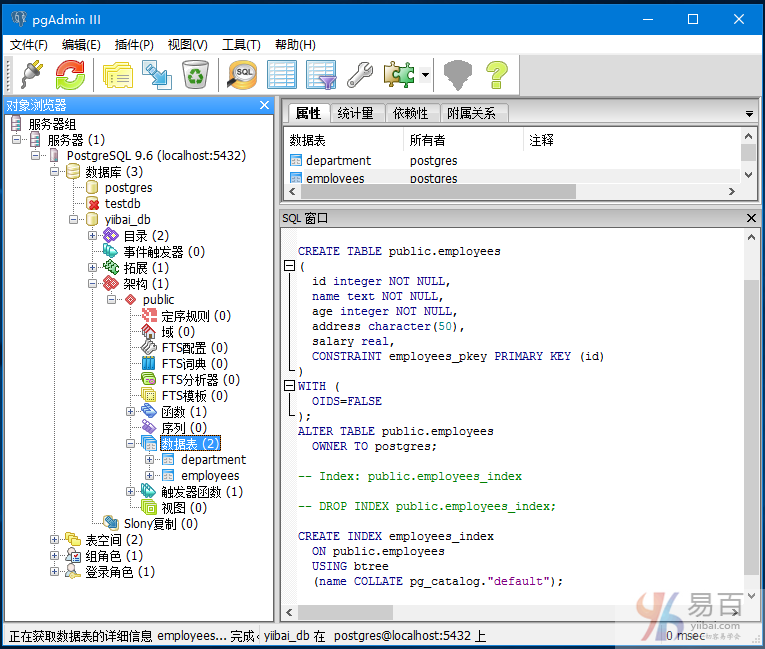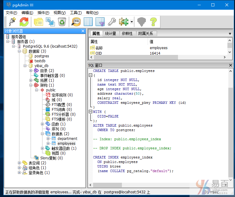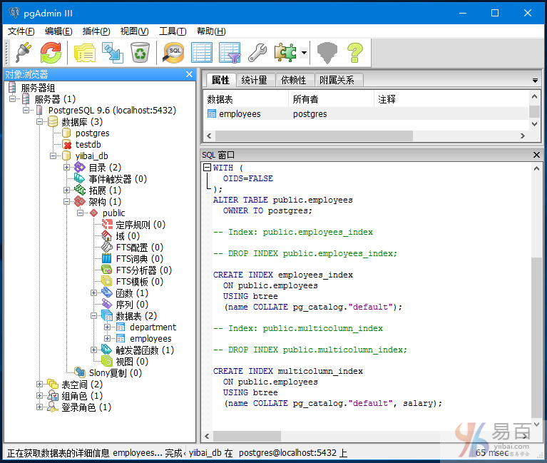 在这里,您可以看到在该表上创建了一个名为“employees_index